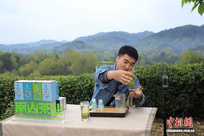 图为采茶小姐正正在采戴。 谯胜海 摄图为茶企代替正在茶园内乱曲播带货。 谯胜海 摄图为采茶小姐正正在采戴。 谯胜海 摄图为茶园取遥处山峦接相照映。 谯胜海 摄图为茶农闪现茶叶。 谯胜海 摄