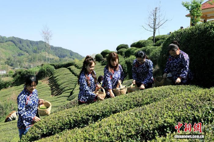 图为采茶小姐正正在采戴。 谯胜海 摄图为茶企代替正在茶园内乱曲播带货。 谯胜海 摄图为采茶小姐正正在采戴。 谯胜海 摄图为茶园取遥处山峦接相照映。 谯胜海 摄图为茶农闪现茶叶。 谯胜海 摄